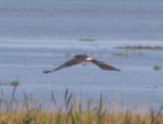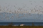 We walked along the dyke before entering Terra Nova; the tide was high and there was a huge flock (somewhere between 2000 and a million, according to Jim) of Snow Geese along the shore. There were lots of ducks too, mostly American Wigeon. A boat came to scare them away, not sure why, perhaps airport staff. See photo attached. Many Great Blue Herons, Double-crested Cormorants and 5 or 6 adult Bald Eagles were also spread out along the shore among the geese. Northern Harriers were continuously gliding over the reeds. Our Delta Nats Scope worked very well with the new tripod donated by John Garnham. However, it would do better with another set of arms to carry and set it up.