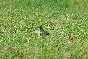 On a gorgeous Wednesday morning, 15 to 20 participants (some came and went during the walk) enjoyed a Spring “Birds on the Bay” stroll around Boundary Bay Regional Park in Tsawwassen. We started and finished at historic Cammidge House. On our walk around the pond at Centennial Beach, a lonely female Lesser Scaup was resting among the Mallards. Unfortunately, our timing was again a bit off and the tide was way out, so we missed out on seeing Shorebirds. We scoped many Great Blue Herons and Bald Eagles on the horizon and a flock of Northern Pintails. We decided to wander the inland trails in search of little birds. The constant cacophony created by the Marsh Wrens, Spotted Towhees, Red-wing Blackbirds and Common Yellowthroats confused yet enthralled most of us (wow…). Some of us managed to see these beautiful birds. We were pleased to see that Savannah Sparrows are back and nesting in the park. And we saw several Tree Swallows (one pair copulating) hanging around a few of Terry and Val’s 25 Nesting Boxes scattered throughout the park. A pair of Northern Harriers entertained us with their aerial antics in what appeared to be pre-mating manoeuvers.