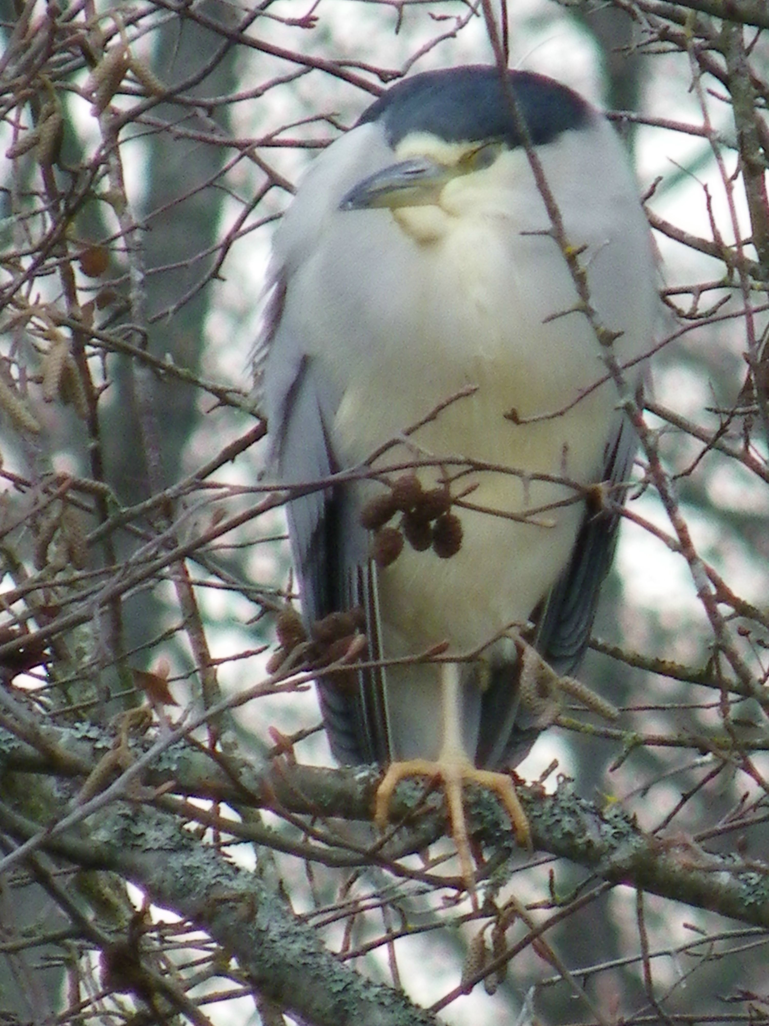 The outer pond by the observation tower was frozen over, and there were no water birds there. On the inner pond, Terry was able to find a male Hooded Merganser, a lifer for Marg and Rick. One, female, Ring-necked Duck, several female Hooded Mergansers, Pintail, Mallards, a few Lesser and Greater Scaup, Northern Shovelers and Gadwall were in the ice-free spots on the inner ponds as well. On the way out we had some great views of the Black-crowned Night-Herons.