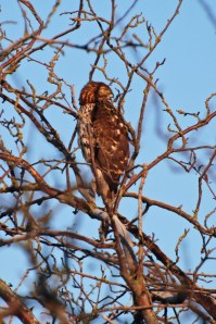 Sixteen birders in a convoy of six vehicles spent a gorgeous, clear and sunny Monday morning (Jan. 3) travelling the farmers’ fields of Ladner, then Westham Island and then at Reifel Bird Sanctuary. They like their names in print: Roger, Rochelle (without Don), Hans-Ulf, Lorna Terry, John (without Kay), newbie Ansa, Kathleen, Deborah, Bill & Mary, Rick & Marg, Jonathan & Lorraine. Hi-lites of the day were: five owl species (six if you include Hans-Ulf’s wooden statue), Red-breasted Sapsucker, a couple of Ring-necked Ducks and many other water fowl species in beautiful breeding plumage, several photographable raptor species (Buteo-Red-taileds, Accipiter-Cooper’s and Sharp-shinned, Falcons-Merlin, and Northern Harriers). You can easily access photos of this outing by clicking on our photogs’ DNCB Flickr site.