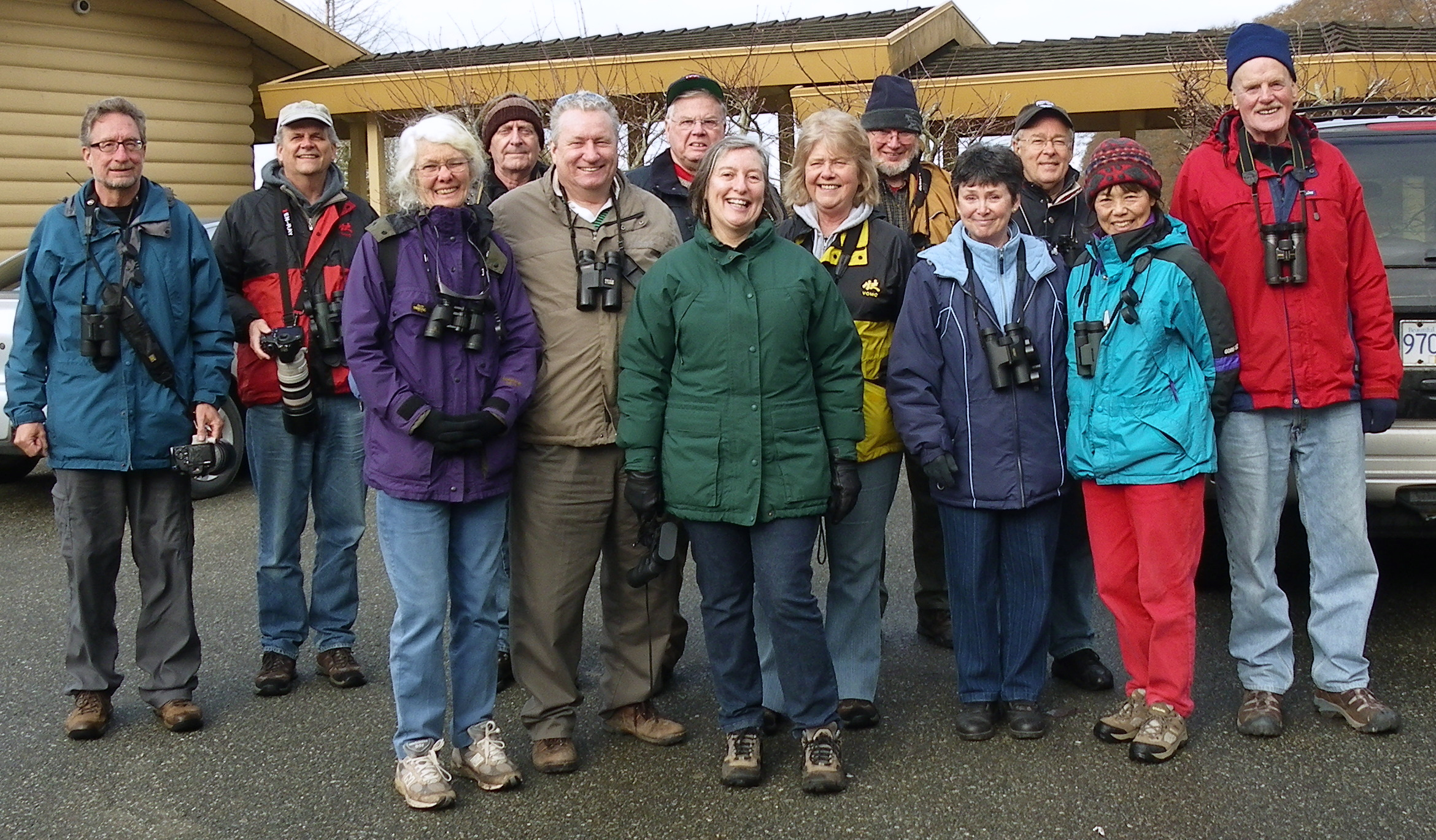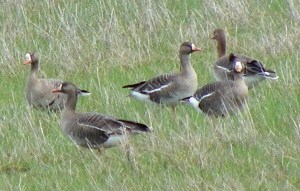 Sixteen birders enjoyed a pleasant, for a change no rain, Monday morning of birding to the Heronry at TsaTsu Shores, through the Tsawwassen First Nations (TFN) Reserve to Alaksen Wildlife Management Area and then to Reifel Bird Sanctuary. I forget who was with us, so you will have to check out the outing photos, including the obligatory Group Photo, on our Picasa site at http://picasaweb.google.com/dncbirding. I do remember there were several couples including: Rick & Marg, John & Kay, Newbie Jim & Kathleen, and Roger & Mike. Hi-lites of the morning were: hundreds of Great Blue Herons (GBH) nesting at TsaTsu, Barn Owl, 12 Greater White-fronted Geese, several Canvasbacks, American Bittern, many waterfowl pair in breeding plumage, and Margaret’s tasty squares.