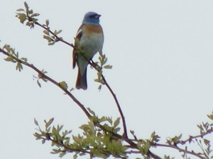 Lots of resident Common Yellowthroats along the Base’s main road. While enjoying the brilliance of a Yellow Warbler, the insouciant Hans (look it up) spotted our destination bird, a Lazuli Bunting, perched above the warbler. It posed for us before Jim scared it away, not once but twice. It was singing loudly, and another seemed to be responding, but we only saw the one bird. Jim’s expected photos on Picasa will be the only justification for his birding faux pas.