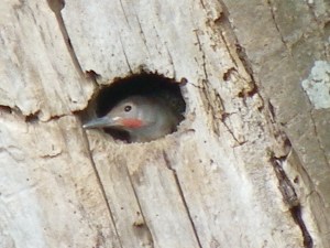 Our first stop was Ernie Burnett Park on Ferry Road in Ladner across from the South Arm Marshes WMA. We were searching there for the nesting Pileated Woodpeckers, but only heard one. There was lots of evidence in the dead trees of them being there, but we could not locate their nest. However, Lorna spotted one of two Northern Flicker heads sticking out a hole, and we later watched the parents coming to feed them.