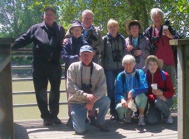 At Ladner Harbour Park, Black-headed Grosbeaks and Marsh Wrens were singing everywhere, and some heard a Western Tanager. We were blanked on the Bullock’s Oriole and Ken’s Owl turned out to be a calling Eurasian Collared-dove. We almost enjoyed the view of the condos across the slough from the new weirdly-placed Lookout. So fittingly, we took our mandatory Group Shot there. Then we hurried back to our vehicles, past the dog pound and through the mosquito section, and went to Speeds Pub for a delicious lunch, a refreshing draught beer and the usual less-than-stimulating conversation.