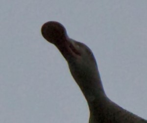 We entered the Sewage Ponds through the back gate. Lots of Shorebirds in the first pond, we (meaning of course our Guru Anne) identified Western and Least Sandpipers, and a Semi-palmated Plover. Lots of ducks, mostly Northern Shovelers in the next pond with a few Dowitchers and Greater and Lesser Yellowlegs feeding along the edge. Nice to see the Greater and Lesser next to each other to see the differences. We spooked the ducks into flight and Rick got a weird shot of a Roseate Spoonbill that turned out to be an distorted view of a Northern Shoveler’s bill. We got back to the parking lot and the tide had receded so hundreds of Shorebirds feeding in the Strait. A Merlin aroused the Shorebirds and gave us a nice look as it swooped by. We walked the causeway a bit for better views and Anne found a couple of Baird Sandpipers, and Killdeer and Caspian Terns. We missed the Stilt Sandpipers, Wilson’s Phalaropes and Horned Larks (seen later that day). Fortunately, Marg’s home-made pastries, Lorna’s PB sandwiches, Anne’s pretzels, Eleanor’s Trail Mix with Smarties, and the regular peanuts and pistachios, with a warm beer disguised in a coke can wrapper, all contributed to a delightful Smoko (Aussie for coffee break) to mourn the move of Rick and Marg to Victoria and their last DNCB outing. On the way back to Tsawwassen, we stopped for a half-hour walk around the “dog-walk” park at MacDonald Beach along the Fraser. We saw our only Bald Eagle (most have left our area to feed on the salmon running in the inland rivers), a Red-tailed Hawk, and umpteen species of dogs paraded around in packs of four to ten by professional dog walkers.