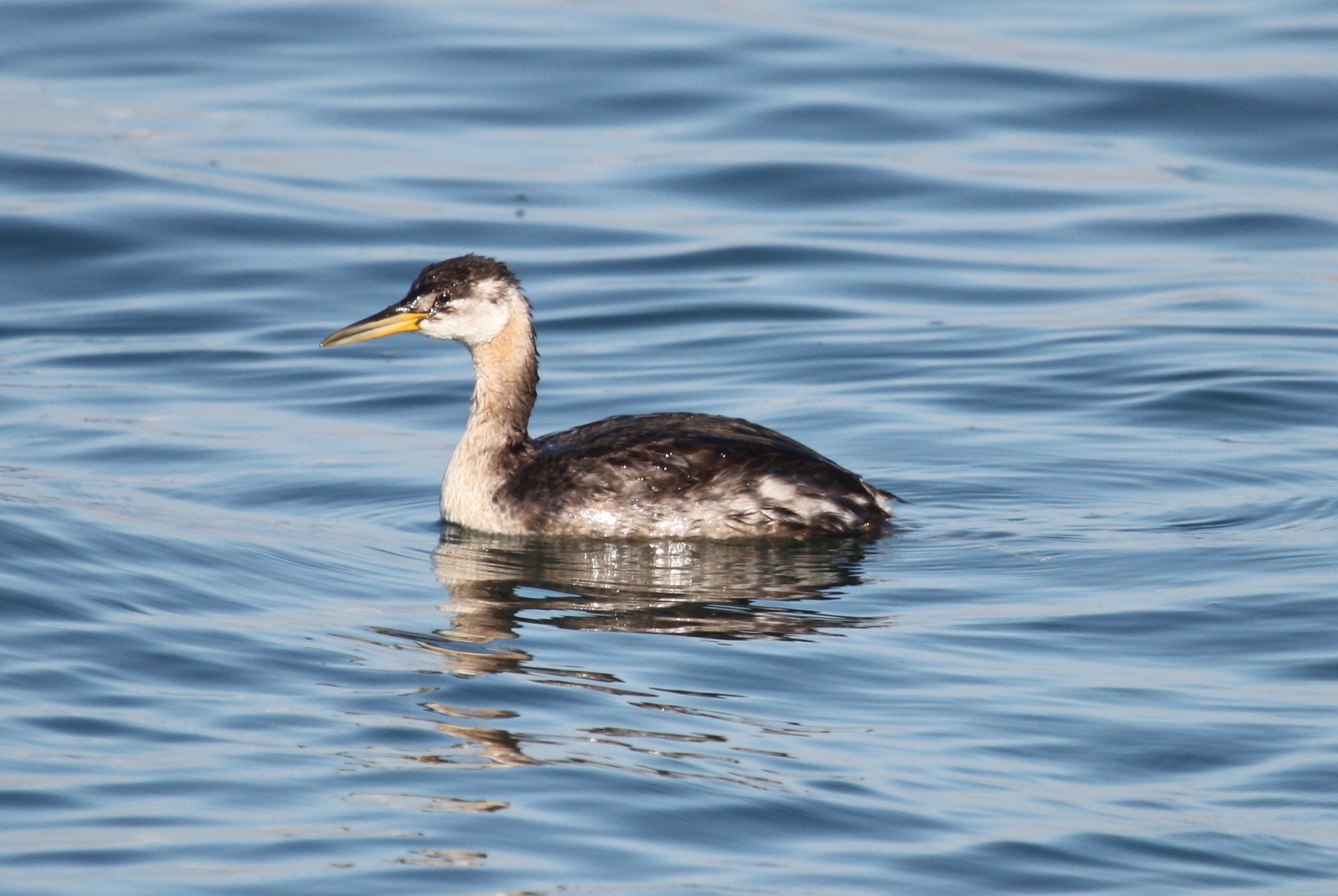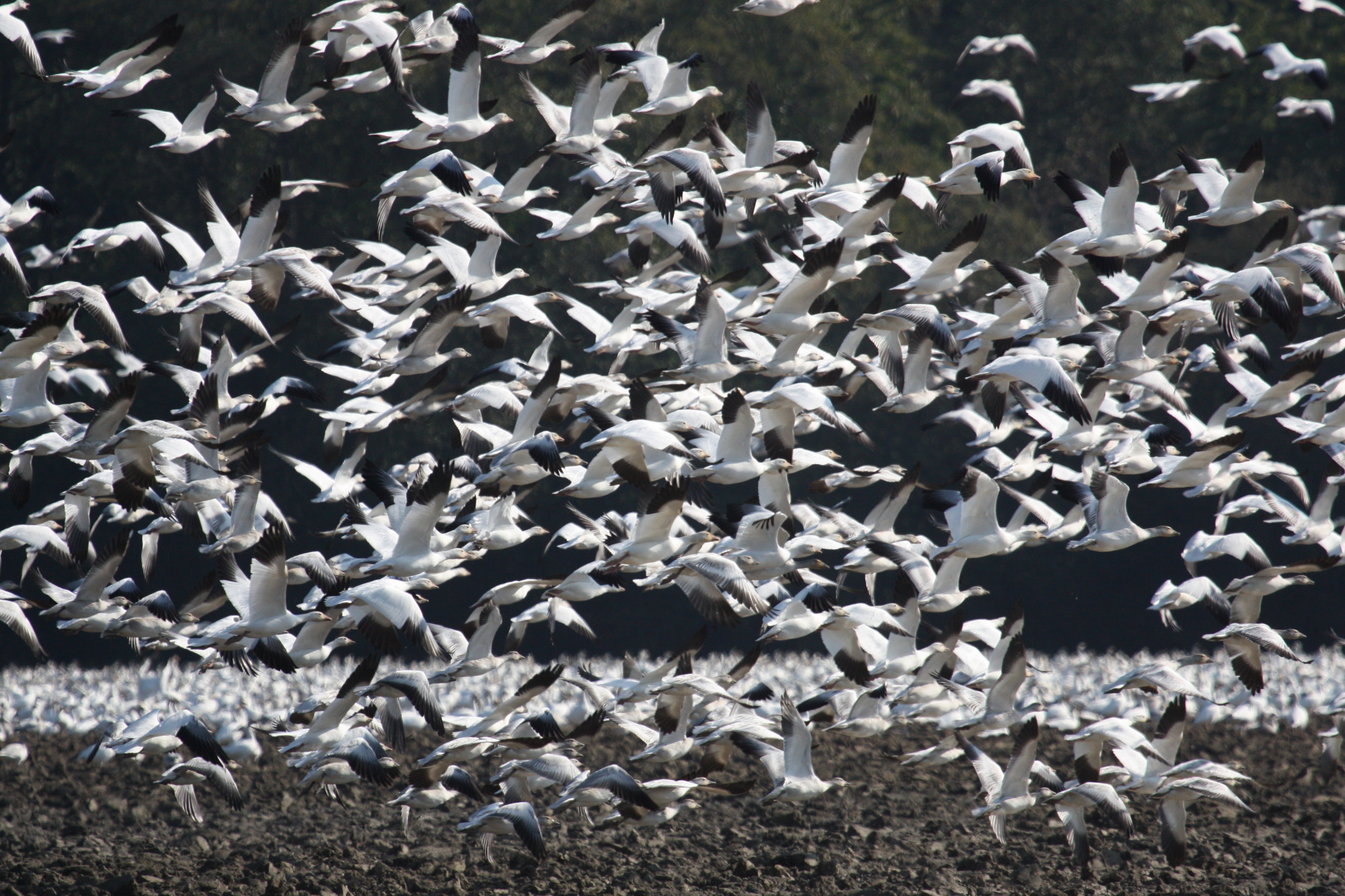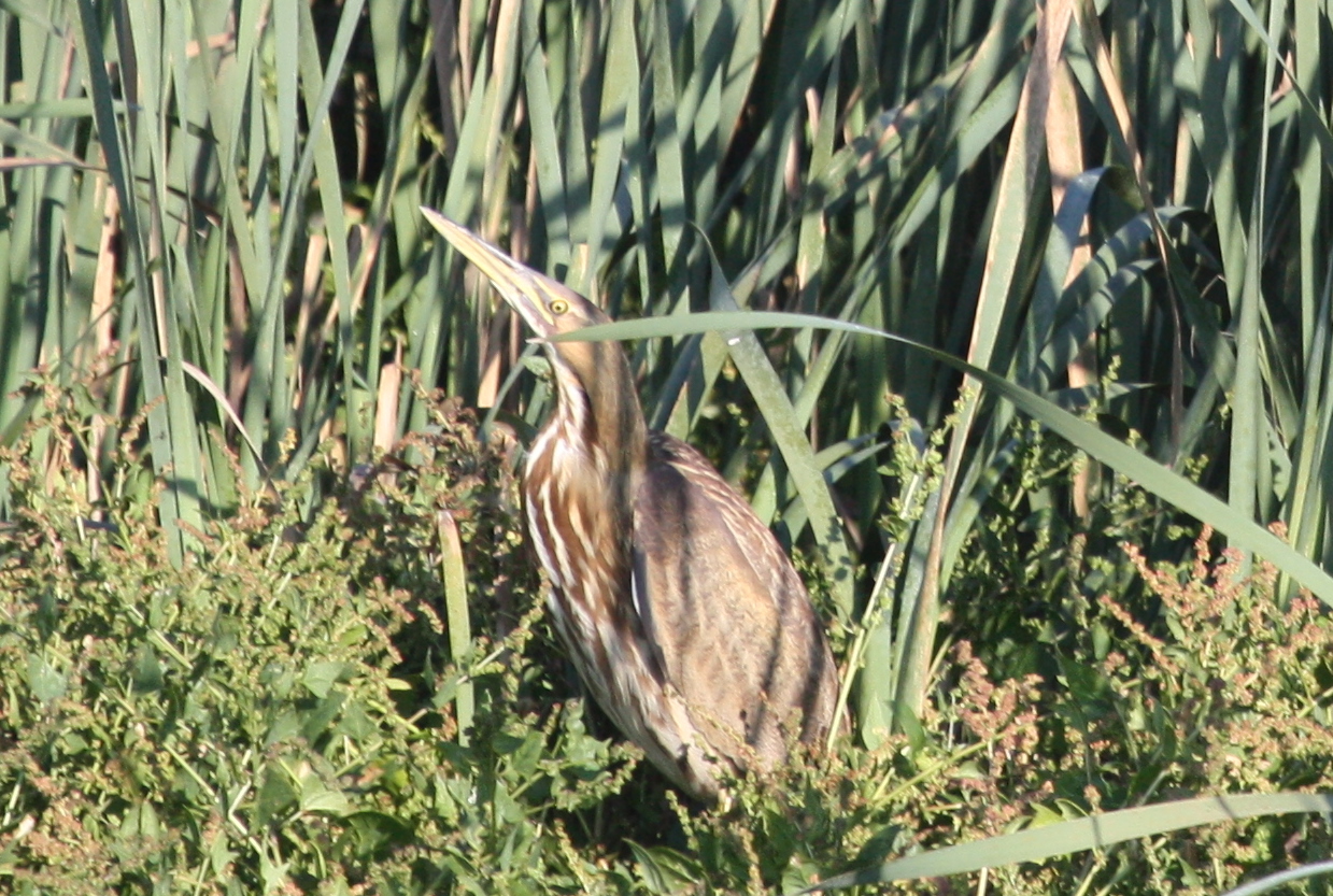 Entering the DeltaPort causeway, I noticed that the rail cars were not blocking the way to the Brunswick side of the Port. We stopped, crossed the tracks, and saw a raft of thousands of ducks huddled in a streak a couple hundred metres from shore. Mostly Green-winged Teal were close in. As we were watching a flock (6) of White-fronted Geese fly over us, Lorna spotted an American Bittern in the reeds. It posed for us, just long enough until the Security folk asked us to leave. We looked unsuccessfully for a No Entry sign to pose under for our obligatory Group Photo. We continued into the new cargo portion of DeltaPort where we could look back with the sun behind us. I guess Hans’ good lucks befuddled the Security Guards as they allowed us to venture down onto the dock close to the water. A Glaucous-winged Gull was feeding on a large floating Chinook(?) Salmon carcass. We had excellent views of Red-breasted Mergansers, Lesser/Greater (?) Scaup, and Red-necked Grebe next to Horned. We enjoyed our delicious Smoko there in the sun, before I left for a Cammidge House Committee lunch. Some of the group continued on to Alaksen where Gareth dropped off a dead bird for examination by CWS. A large flock of Snow Geese was in the field by the Alaksen entrance.