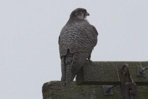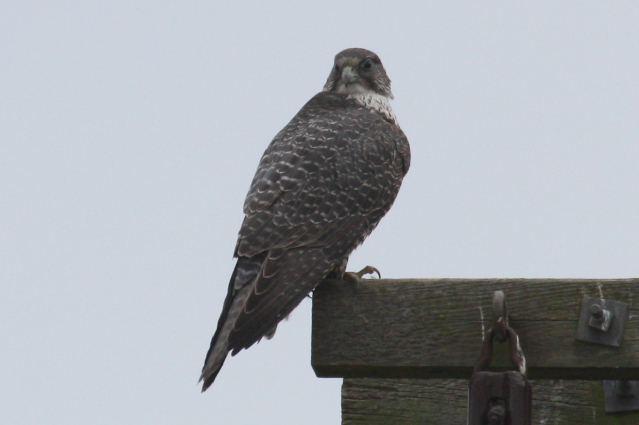 I’m baack!!! Happy New Year. Eleven birders (Roger, Hans-Ulf, Lorna, Terry, Ken & Anne, and four Newbies John McFarland, Julie, Bryan & Janet, and me) spent a mild Monday morning at the Tsawwassen Ferry Port, then the Deltaport Container Port, then Brunswick Point. We saw lots of neat stuff; some hi-lites being a Gyrfalcon, three Peregrine Falcons, Western Meadowlarks, both Snowy and Short-eared Owls, lots of diving Ducks and, the coup-de-grace was the return of Lorna’s PB sandwiches. Check out Terry’s excellent photos on our DNCB Picasa site at: http://picasaweb.google.com/dncbirding.