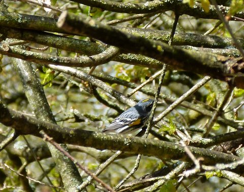We took a circuitous route (some people don’t listen to instructions) to 72nd Street and the North Forty Park, where it had stopped raining and cleared up beautifully.  Several participants had never been to this dog-walking Delta Corp.  Park and found the explanatory signage and old photos interspersed around the area very interesting.  Along the main street near the entrance we saw our first Common Yellowthroat and of course, Savannah Sparrows.  We walked the back streets of the old subdivision, under many different tree species, and got excited and frustrated by the many Warblers we saw and heard.  Yellow-rumped, both Audubon and Myrtle, occasionally posed briefly for us.