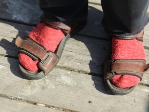 We saw a late pair of American Wigeon and wondered whether they might stay here and nest. Bushtits were flying in and out of a couple of their nests. Downies and Northern Flickers were the only Woodpeckers we saw, although there was evidence of the Pileated being there. A super morning, that most of us really enjoyed, including Hans-Ulf who was kept awake by the glare (and odor) from Jimmy’s red socks.
