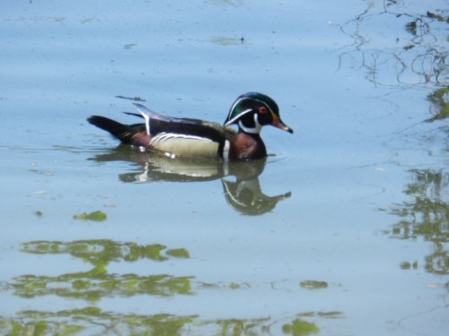 We had our Smoko of Peanuts, Jimmy’s raisins and Kay’s biscuits at the cars before walking the trail along the sloughs among the condos. Lots of ducks (Mallards, Wood, Gadwall) near the shores, some Mallards with only a few babies left; the Bald Eagles are picking off the young ducks and goslings with regularity.