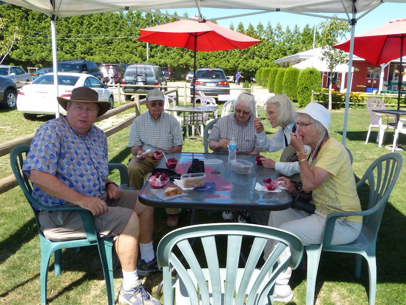 We left Reifel at 11:30 a.m. and stopped at Emma Lea’s Farm for the obligatory fruit and ice cream. A number (one is a number) of us had an enormous Sundae with Tayberries, Strawberries and Blueberries.