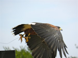 The Harris Hawk (female) who flew first gave us a varied display. In the wild, the female Harris Hawks command a coterie of males who do the hunting (often on the ground, flushing out prey such as rabbits), and then the spoils are set upon by all.