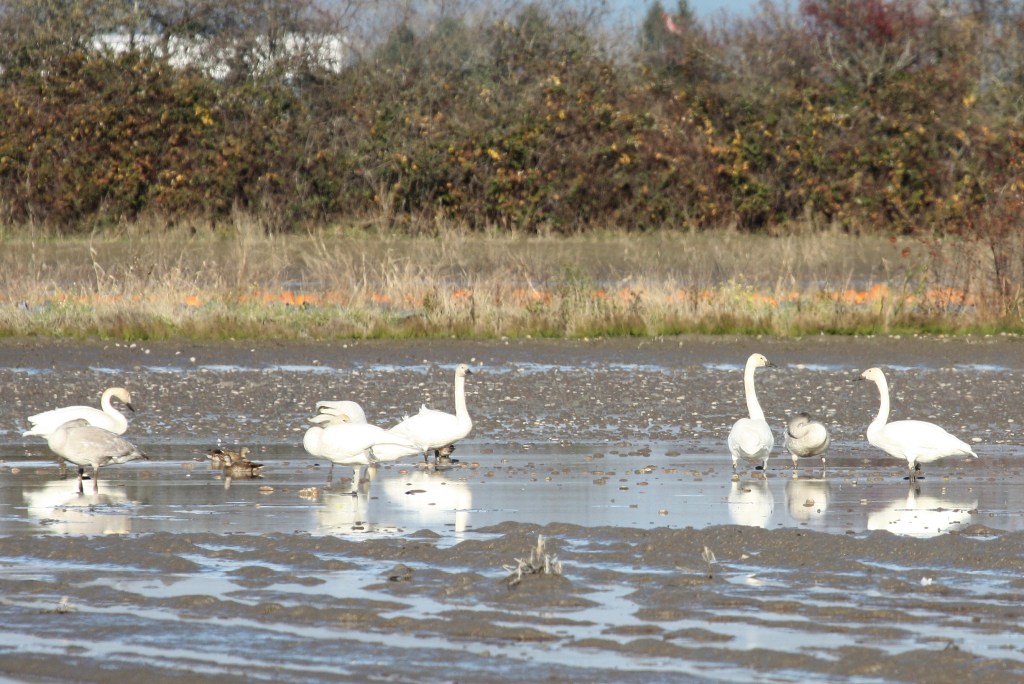 On the way back to Tsawwassen, we stopped for a large flock of Trumpeter Swans grazing in a field.
