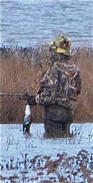 We met Richard and Tanya with MV Parks and they apparently saw the Thrasher 10 minutes after we left, right where we said it should be. We walked to the Houweling Nursery home ponds and saw the resident Northern Shovelers, American Wigeon, Green-winged Teal, American Coots and about 20 Snowy Owls, many on the nursery and home roofs. The Snowies were frequently in flight, changing perches, not sure why, but glorious to watch. A Hunter was waist deep in the water about (or less than) 100 meters from the dike, picking off ducks with regularity. On leaving, he mumbled almost incoherently that he got his limit as two others replaced him.