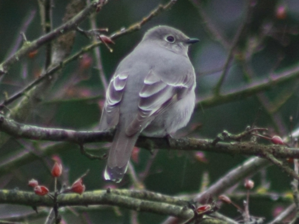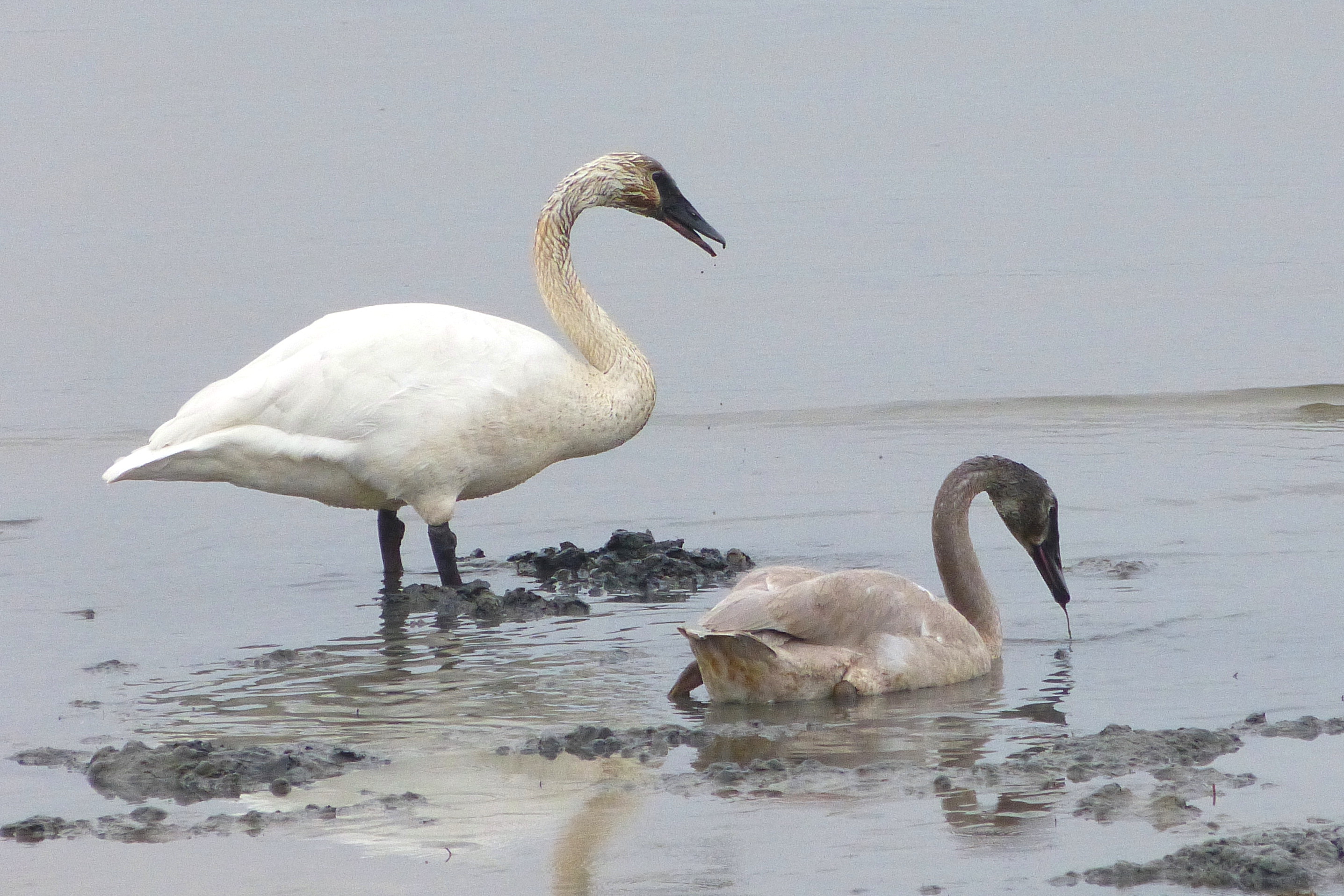 Our “bird of the day” came near the end of the morning when a Townsend’s Solitaire flitted in some shrubs along the trail and we all got great looks, and photos. On the dike walk back to the parking lot, as we were admiring the Snow Goose fly-overs, a flock/swarm of shorebirds (probably Dunlin) landed on the river edge beyond the reeds. Marion saw a few Trumpeter Swans too.