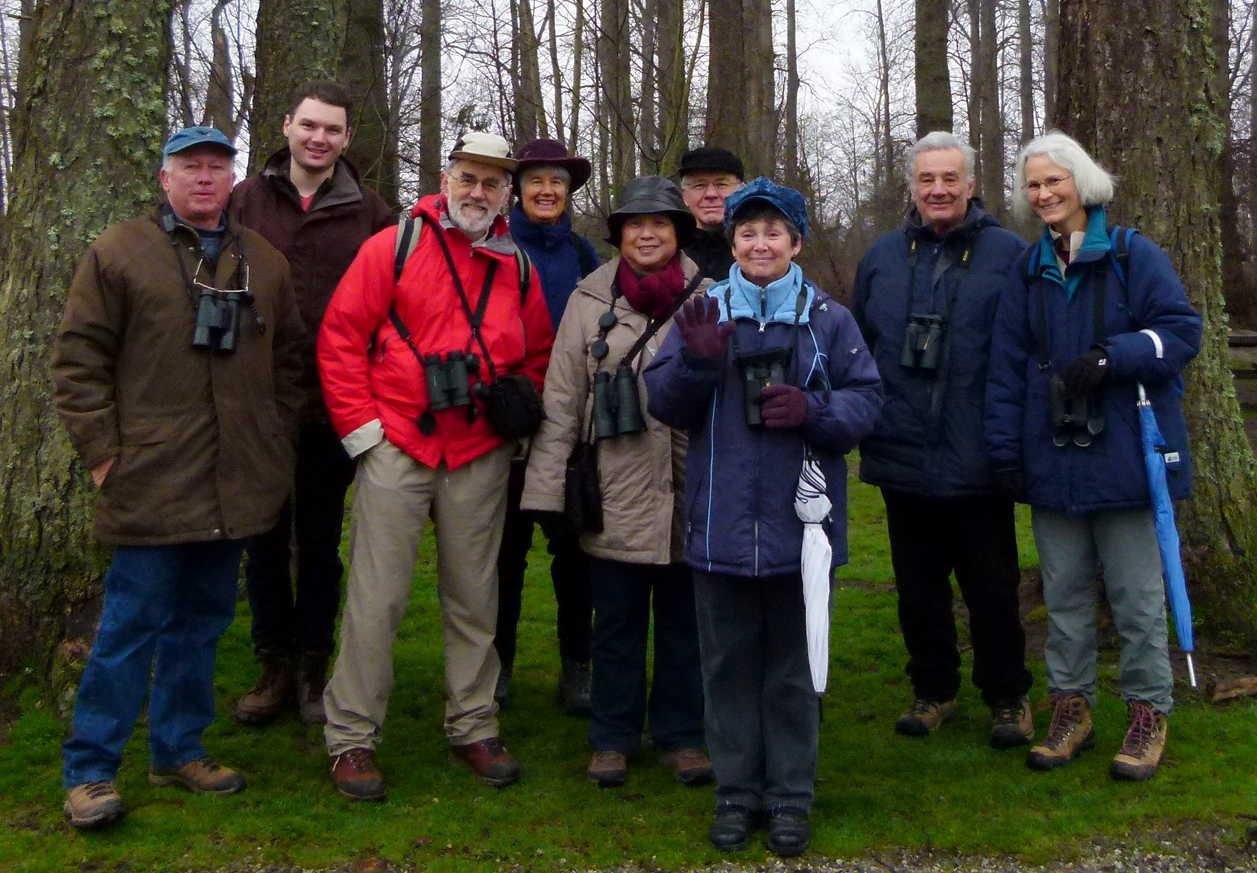 Back at the cars we moved on the Beach Grove Park to search for the resident Great Horned Owls but met with a lack of success and it was speculated that an apparently new Bald Eagle nest and its residents might be the cause? However, we did see a number of Downy Woodpeckers, Pine Siskins, Juncos, Black-capped Chickadees, and assorted sparrows. After the obligatory group Photo, I was required at home for domestic duties and left the rest of the trip in able hands with Lorna as the designated designator.