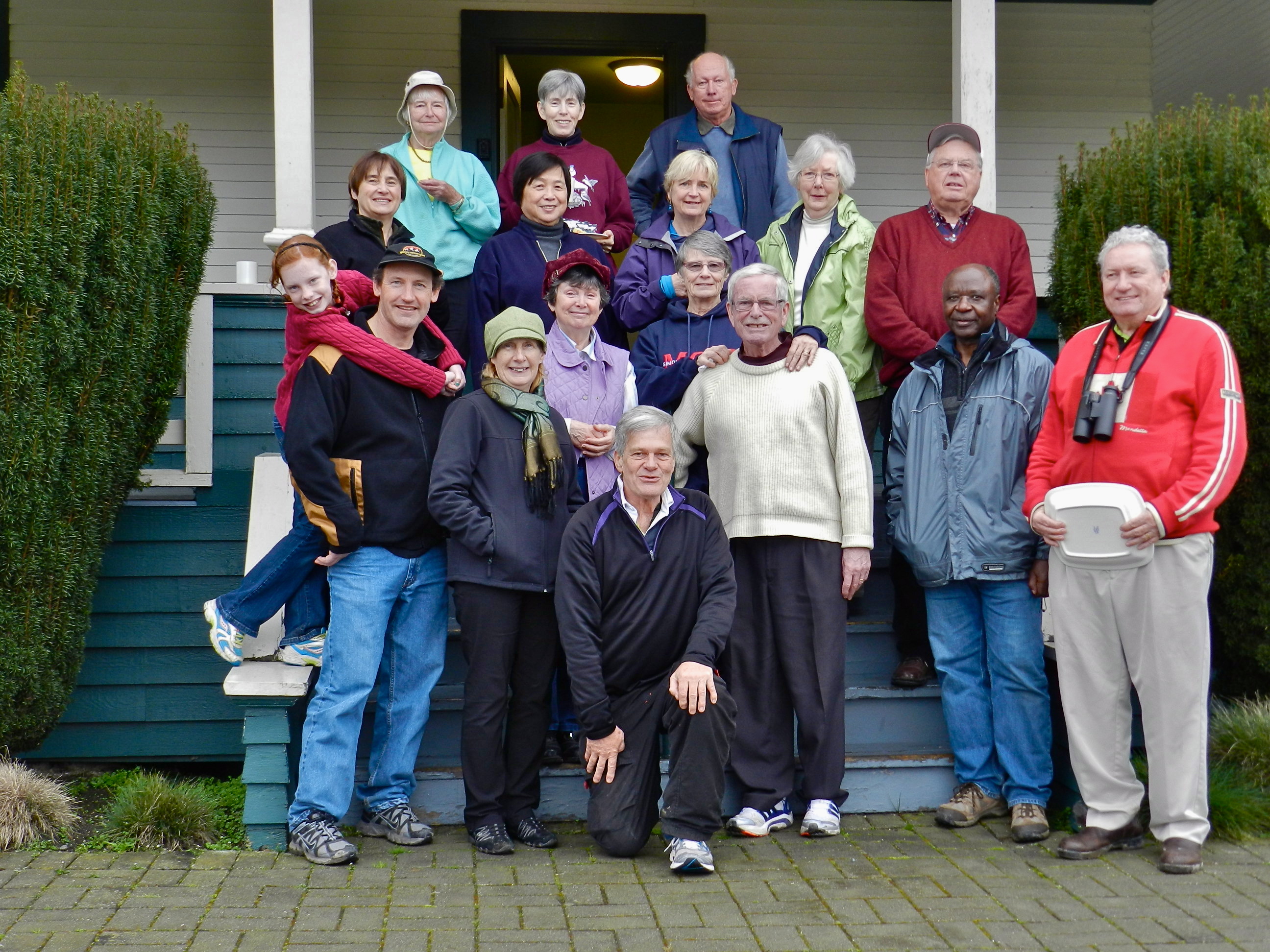 Anyhow, our starving group got back to Cammidge House at 11:40 a.m. (10 minutes late) to be welcomed by Jennifer, Don and Rochelle and their array of delicious home-made Scones and Pastries (including Craisin, White Chocolate Shortbread made by Sandra (and me); I measured the half-cup of craisins), plus other fruit, cheese and gourmet treats that were wolfed down as if these “scavengers” had not seen food for a week. It was a glorious morning of birding, and the rain held off, even for our second Group Photo taken by Ken on the CH steps, under the affable Don’s clownish tutelage.
