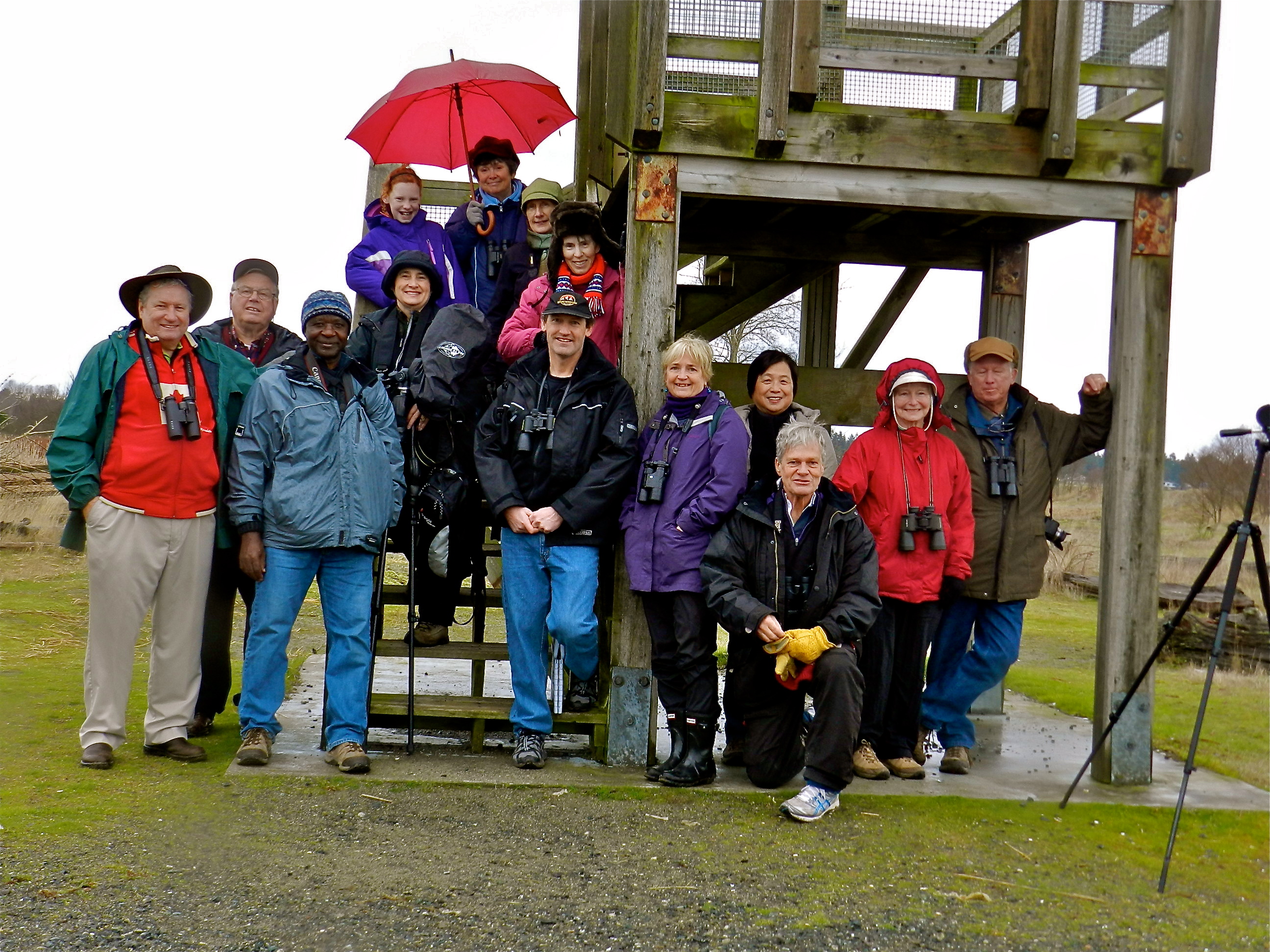 We followed the path past the new Concession Stand. It’s a good thing it was quiet with no birds around because no one would have seen or heard them as everyone was talking about the sightings they had somewhere else, the trips they had been on or were going on, new grand children, school reports due, or what they had, or didn’t have for breakfast. An eclectic group of Weirdoes. We reached the Lookout where Ken took a mandatory Group Photo