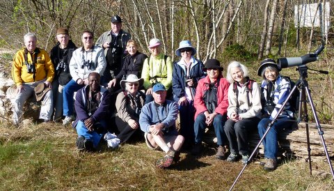 Most DNCBers didn’t care about the birds as they enjoyed the warmth of the sun and the beautiful vistas over the water and surrounding hills, and of course their inane chatter. The sun was brilliant so Roger took our mandatory Group Photo here.