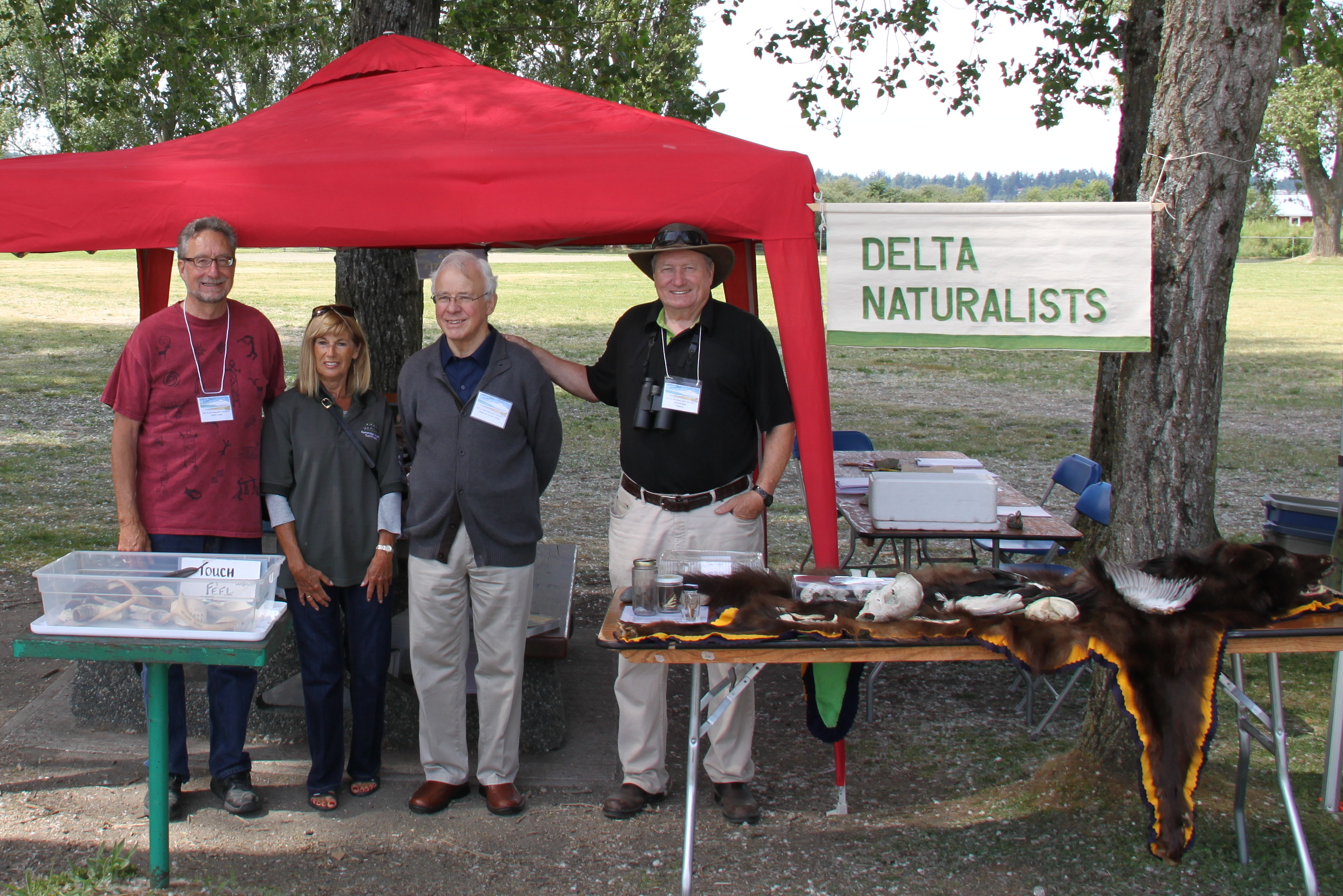 We set up our DNS Display, under the guidance of Terry Carr, our very efficient Display Coordinator, among the trees facing the beach. Our Display also included Cammidge House Committee info, and Metro Vancouver Parks Interpreters had their tent and inter-active stuff beside our tent. Throughout the morning several Nats helped with the set-up (8:00 a.m.), manned/womaned our Display stuff, and/or helped with the tear down around Noon. Our Volunteers along with Terry were: Joyce Manary and Boudi, Lorna Clements, Hans-Ulf Schellhase, Anita Den Dikken. Several members of the Boundary Bay Park Association, who are also Delta Nats, also helped with our Display throughout the morning when they weren’t doing other Breakfast stuff. These members are: Geof & Jean Hacker, Don & Rochelle Farquhar, Elizabeth Perrin and me. So we had a really good team of Nats helping at this event.