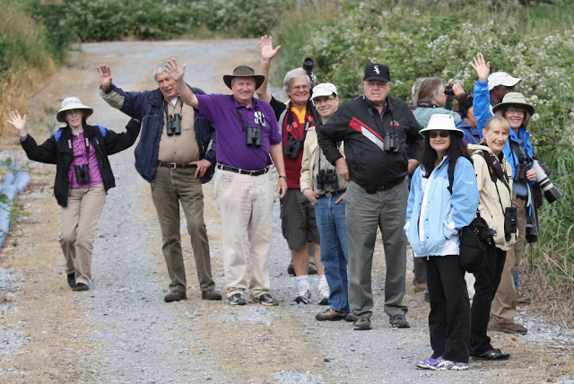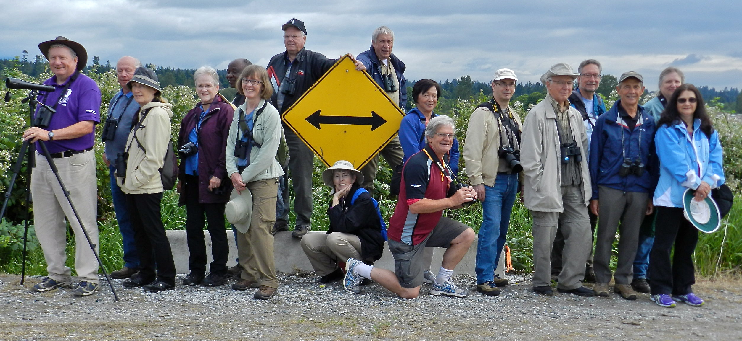 Ken took the mandatory Group Photo of the directionally-challenged seventeen. We then left the Sewage Lagoons and followed the path along the Fraser. There were many Purple Martins, adults and young, around their boxes on the pylons, more than I have ever seen there; seems like a successful year.