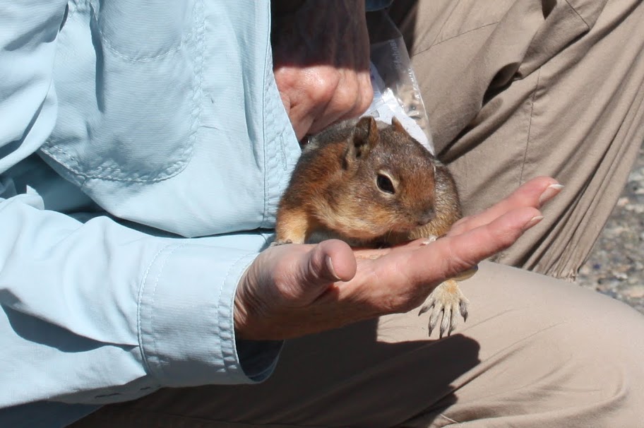 And the families of Golden-mantled Ground Squirrels were also very tame, eating from our hands and even jumping into our car.