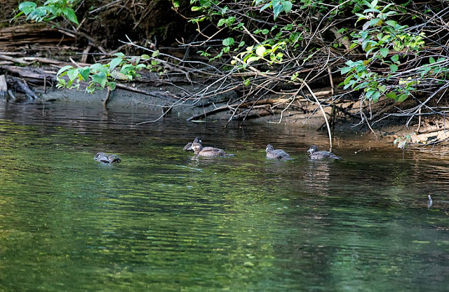 Nine of us, including the affable Greg Walker visiting from the UK, left the Ladner Bus Exchange at 6:30 p.m. packed into two vehicles, Anne’s van (6) and Tony’s car (3). We picked up Gareth on the way and Jonathan & Lorraine brought Mike and Marion (4) from New Westminster. Annie Kaps met us at the Manning Park Lodge. Super car-pooling, one of my pet peeves satisfied. After a very pleasant 2 hour drive, we all (14) met at Sumallo Grove in the Skagit Valley Provincial Park “around” 8:30 a.m. It would have been earlier had Mike not needed a MacDonald’s stop in Hope. Before continuing on the half hour drive to the MP Lodge, we had a brief walk among the 500 year old trees in this grove and along the Sumallo River. It was pleasantly cool and we saw a beaut brood of Harlequin Ducks (Mom and 4 ducklings) as well as a brief glimpse of a Spotted Sandpiper.