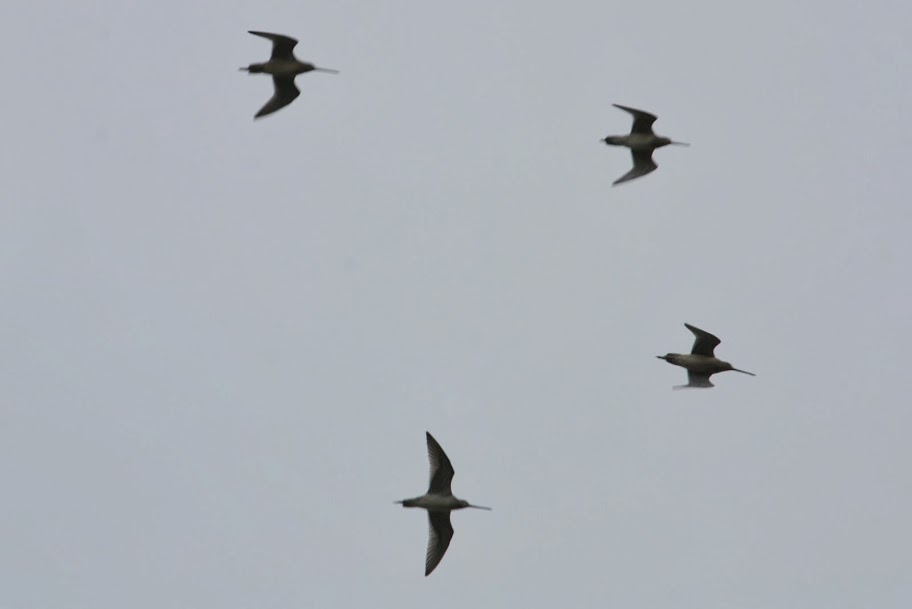 Always exuberant Lorna heard a Cowbird, but it turned out to be a Cow mooing. A flock of Dowitchers flew over us and Terry even got a shot “on the wing”.