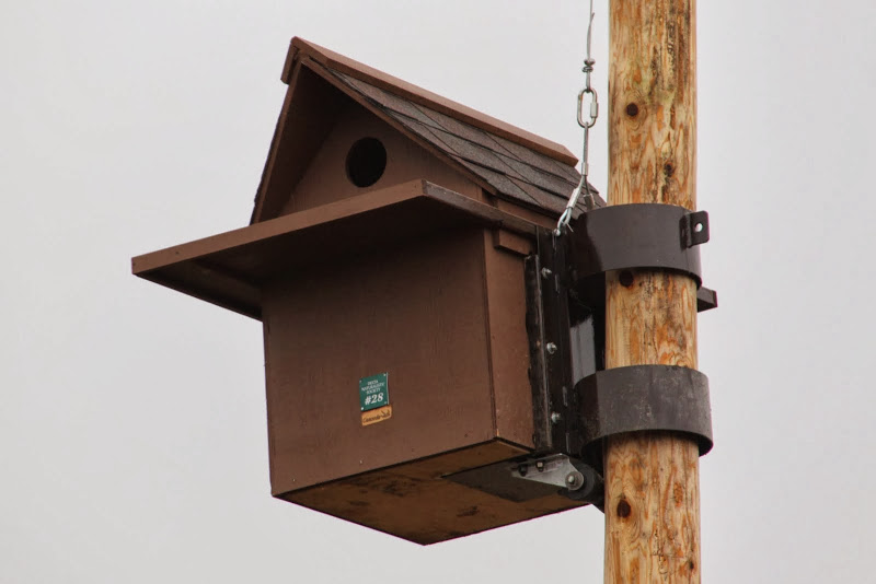 the pole was ensconced into the ground and was almost vertical; the elaborate pulley system on the box (manufactured and hopefully patented by MV Parks staff) was connected; and the box was raised to an appropriate height on the pole. It looks beautiful and you can see the photo evidence, including videos, of the Installation on our Picasa site at: https://picasaweb.google.com/dncbirding.