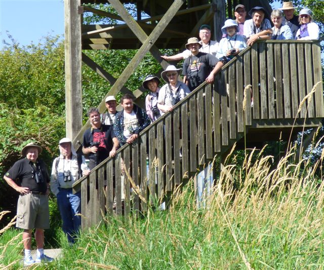 Already restlessly roaming at the park were Marion, Greg, Paula & Ray, and Otto Andretti raced into the parking lot shortly after. We were quickly persuaded to take the Dike Trail with Otto’s promise of three Bullock’s Oriole nests, and made plans to check out the Ospreys and American Redstarts on other trails later. Shortly after we started our ramble (along a flat but tricky trail – almost lost a few birders to the deep potholes) we were joined by another carload – White Rock Al with Wim and Pauline. Total participants – 16.