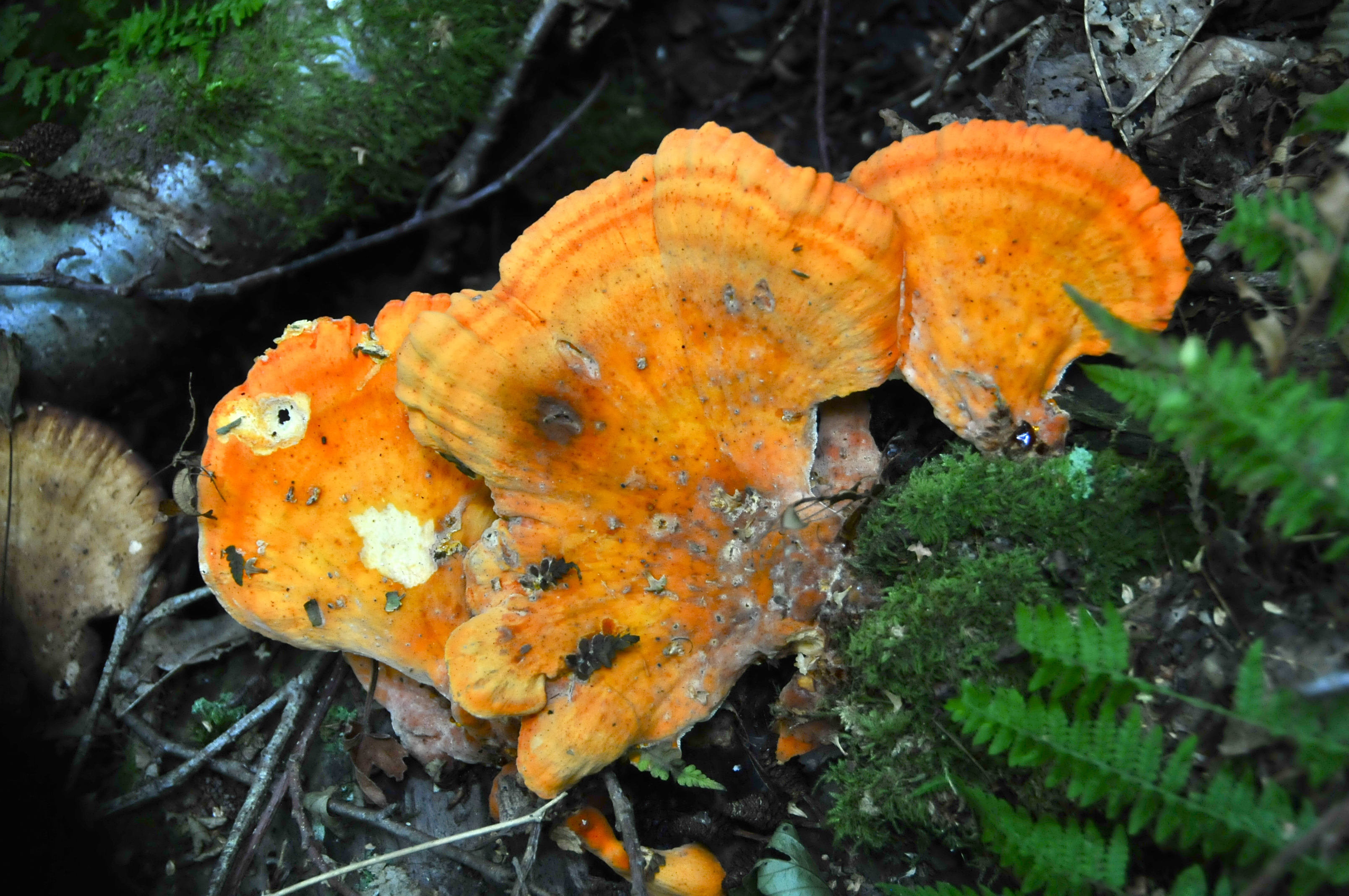 Arriving at the Pt. Whitehorn parking lot, Ken’s Pileated Woodpecker turned into a Steller’s Jay and posed nicely on top of a Fir Tree. We had a very pleasant walk through the Whitehorn woods, with Al identifying the tree species including Sitka Spruce and Grand Fir. Marion, Glen and Pauline were almost-believable in their collaborative identification of the flowers, mushrooms and fungi, my favourite being the pumpkin-like Chicken of the Woods. Birds were noisy at various spots along the path and some saw or heard: Black-capped and Chestnut-backed Chickadees, Brown Creeper, Red-breasted Nuthatch, Kinglet species, Pine Siskins, Pacific Wrens, Downy Woodpecker and Common Ravens. We all grunted and groaned on the path down to and up from the beach while a family of young kids ran by us. But it was an invigorating walk with seemingly endless nonsensical chatter.