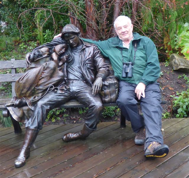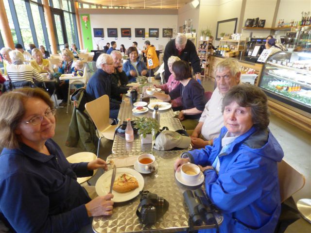 At VanDusen Gardens, we met up with White-Rock Al and Alice, and found we were too short in number for the reduced group rate. (This is where those who chose to sleep in should feel a twinge of guilt!) Knowing that the birds would be few, and that we were there for the fall colours and exotic plants, we headed up the south trail, pausing only for a photo of Gerhard on his regular bench with his friends from last year’s visit… hopefully Ken will insert the photo here!