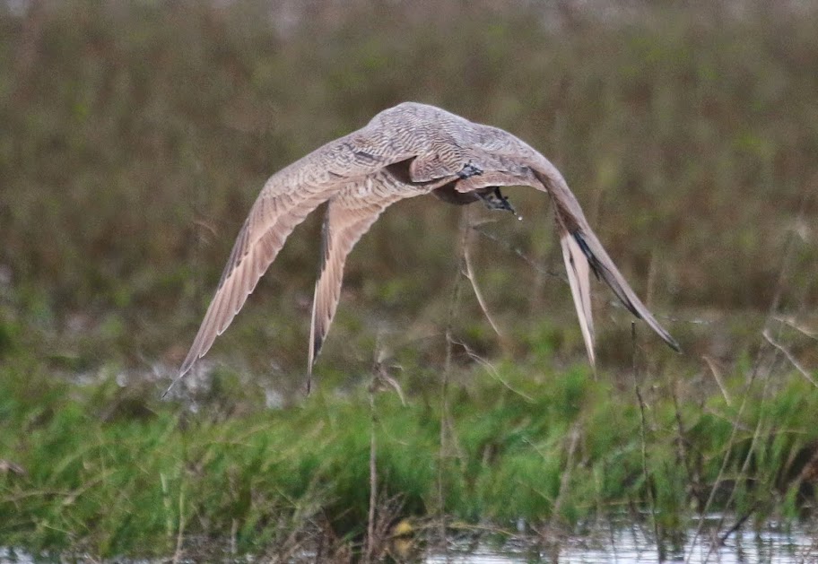 Almost immediately the target birds – los tres amigos – the Long-billed Curlew with his Godwit buddies, were spotted resting in the vegetation among squadrons of Pintails and Wigeons (including several Eurasians) and a number of Herons and Greater Yellowlegs.  The threesome have been winter residents there for years.