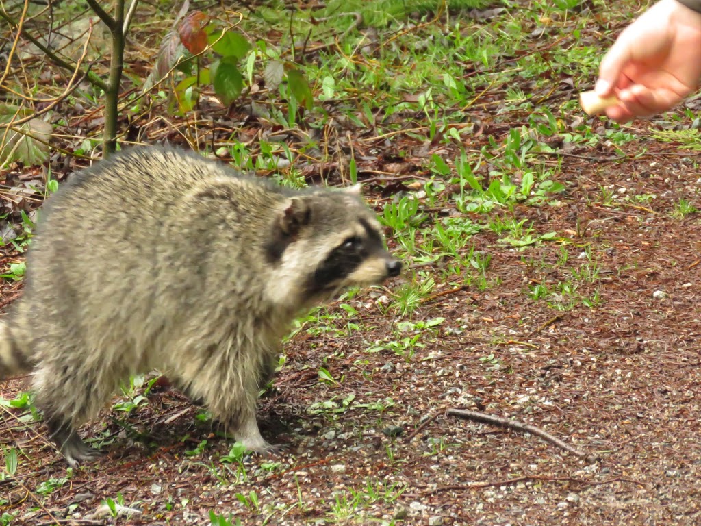 Heading west a Sharp-shinned Hawk was sighted (not in photos). Otto tempted fate by hand feeding a begging racoon.