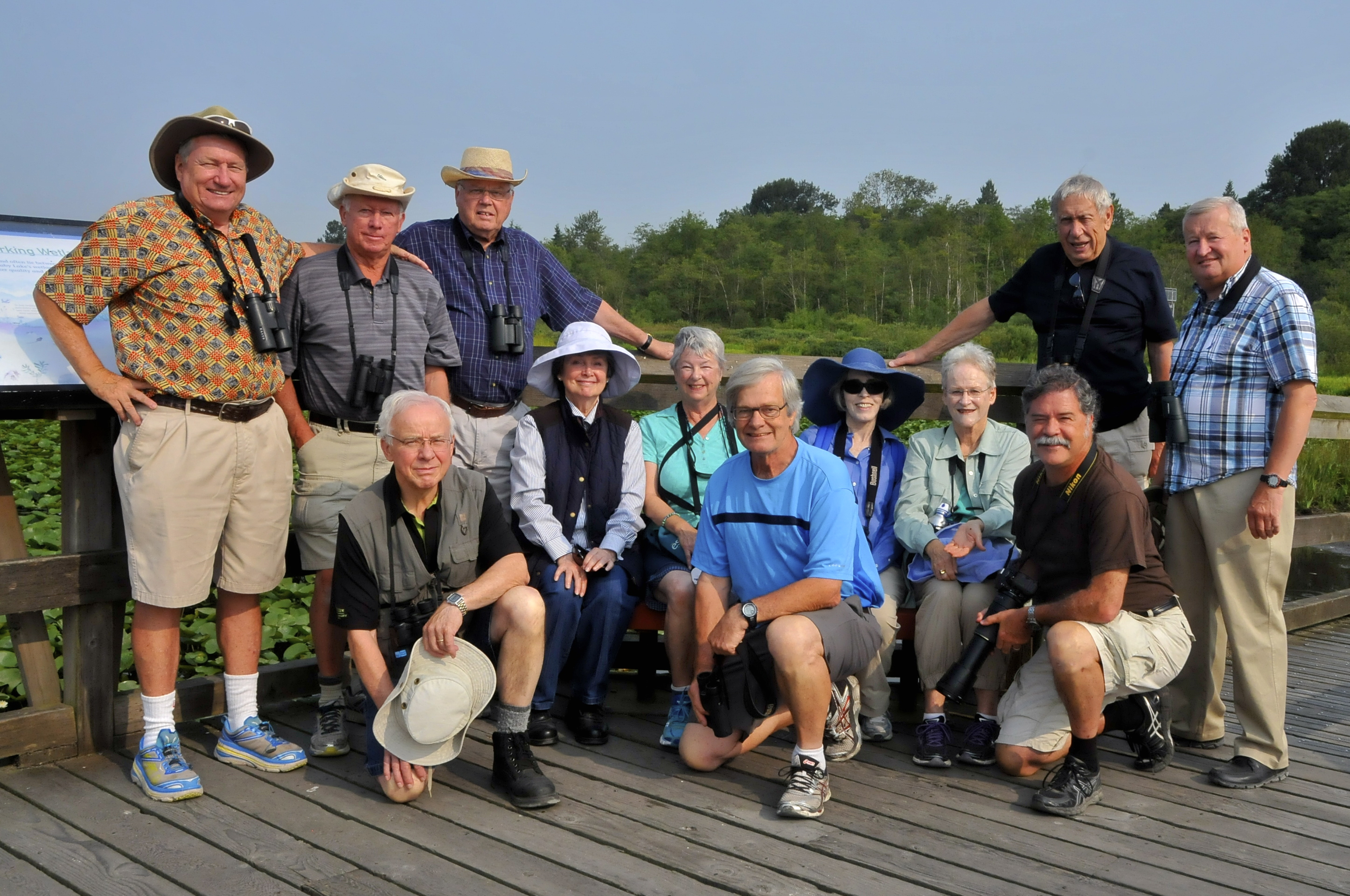 Fourteen DNCBirders met at Piper Spit, Burnaby Lake, on a warm, if not hazy from forest fire smoke, day. They were Tom, Ken and Anne, Glen, Al Schulze, Lorna, Marion S., Roger M., Hans, Mike, Rob and Marylile, and (shortly after the group photo) Pat and Maureen.