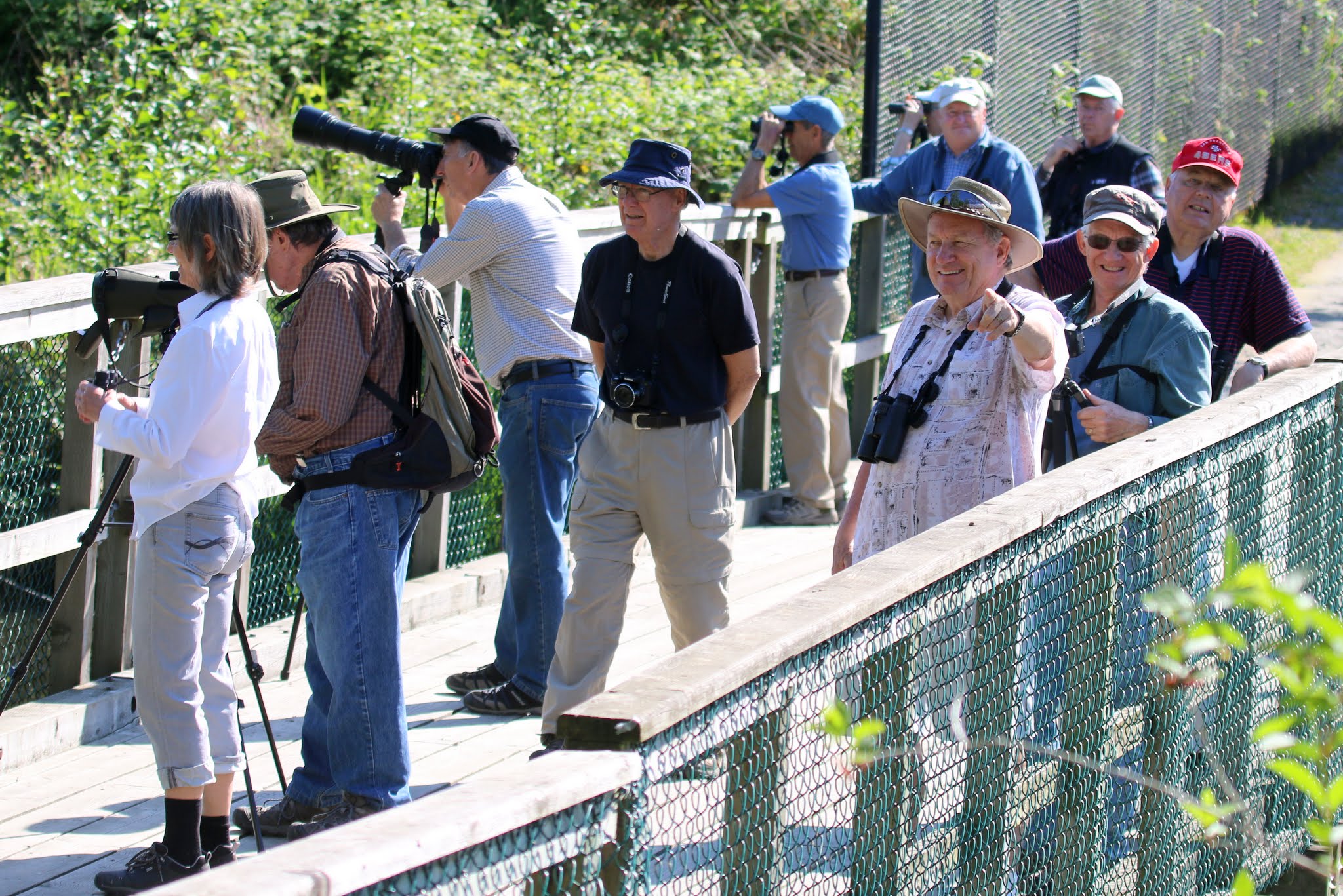 Twenty-six DNCBers (names at end) enjoyed a record hot (28 degrees) Wednesday morning of birding in three Parks in Ladner. Lots of neat sightings; check out photos by Brian BA), Liz(LS), Jim (JK), Terry (TC), Pat (PS) and more at our DNCB Picasa site.