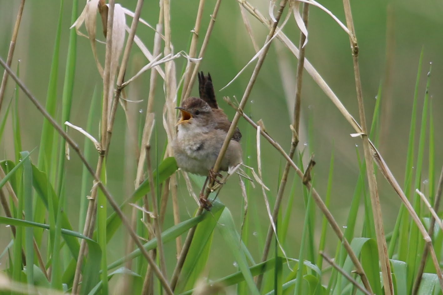 Lots of Marsh Wrens calling, and we heard Bewick’s Wrens later in the woods.