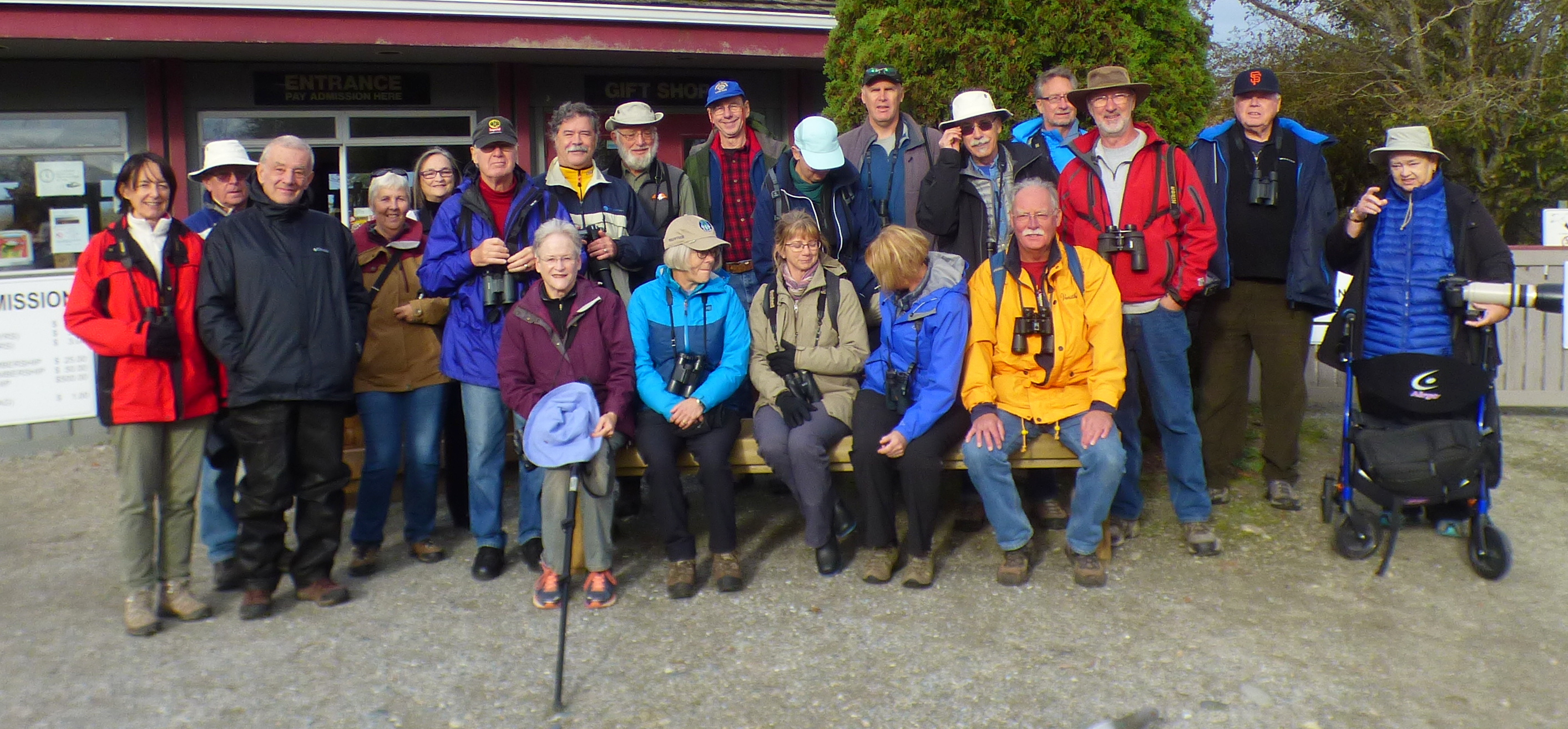 Waiting for us in the Reifel parking lot were the following Delta Nats; Julie, Nance, Brian, Jack, Marion, Pat and Maureen. We took a Delta Nats group photo with Brian trying to herd two Sandhill Cranes into the picture (they resisted). The Pender Island contingent arrived, eight in all and we took their group photo and then a picture of the combined group (22 in all). Sorry, Tom, I neglected to get all the names…mea culpa. A single Cooper’s Hawk had been seen by the gift shop.