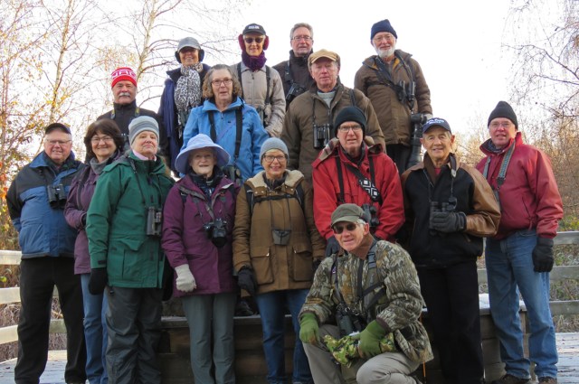 I arrived a bit late only to see the group disappearing into the woods. Birders tend to dawdle now and then so I was soon able to catch up with them. They had a list of birds for the blog that had already been spotted – Northern Pintails, Mallards, and American Wigeon. Also found was a number of Horned Grebe, Red-breasted Merganser, Eurasian Wigeon, Green-winged Teal and Bufflehead.