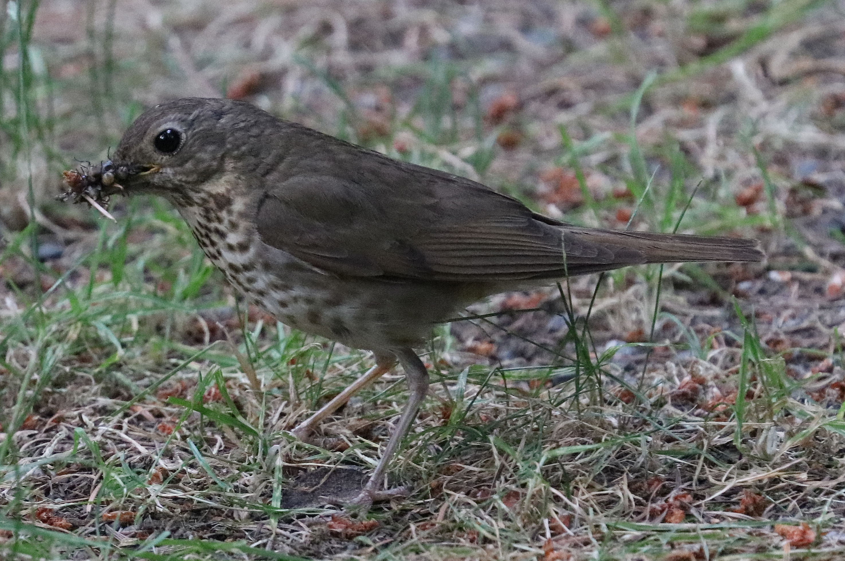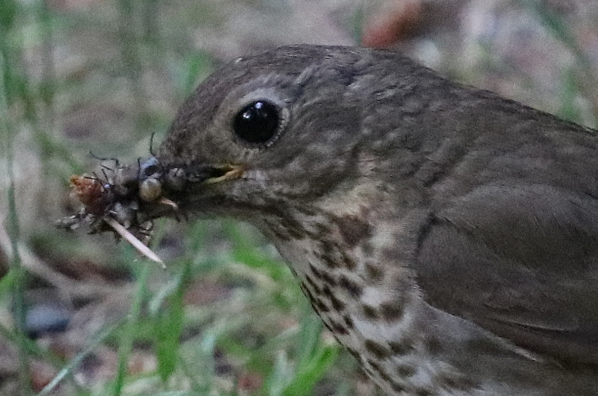 Near the parking lot, the early people watched a Swainson’s Thrush. Photos showed that its beak was full of bees.