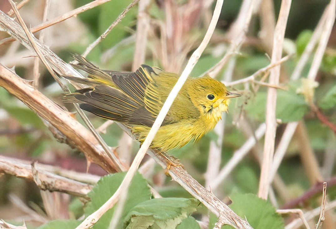 The Great Blue Herons were scattered along the water’s edge, and numerous gulls were present, including the Glaucous-winged and Ring-billed. A few Caspian Terns announced their passing. The passerines kept the photogs busy and amongst the birds identified were Lincoln’s, Savannah, Song, and immature White-crowned Sparrows, Common Yellowthroat, Orange-crowned Warbler, and a Yellow Warbler that was busy dipping in the ditch water and having a wash. The wet, fluffed up bird was confusing us and, after much deliberation and photo-sharing with bird queen Melissa Hafting, was determined a first-year Yellow Warbler.