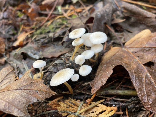 We didn’t add any new ocean birds to the list, but I did hear Red-breasted Nuthatches beeping away in the thick forest canopy overhead, as well as what we suspect to be a Douglas Squirrel (or perhaps a chipmunk) making a high, repetitive call, which I at first took to be some kind of small raptor until Merlin utterly refused to give me a Sound ID for it. We also found Glen’s Douglas Fir Cone mushrooms: remarkably beautiful and graceful-looking things (for a fungus).