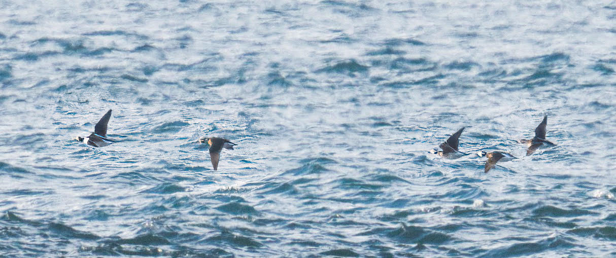 There was also a small contingent of Pigeon Guillemots in non-breeding plumage bobbing in the water and a flock of Snow Geese flew over. But most exciting of all was the flock of Long-tailed Ducks that flew by so quickly, only a few of us saw them. Luckily, Brian was able to snap a photo, which may never find its way into a National Geographic magazine but it being proof that I’m not losing my marbles makes it far more valuable to me.