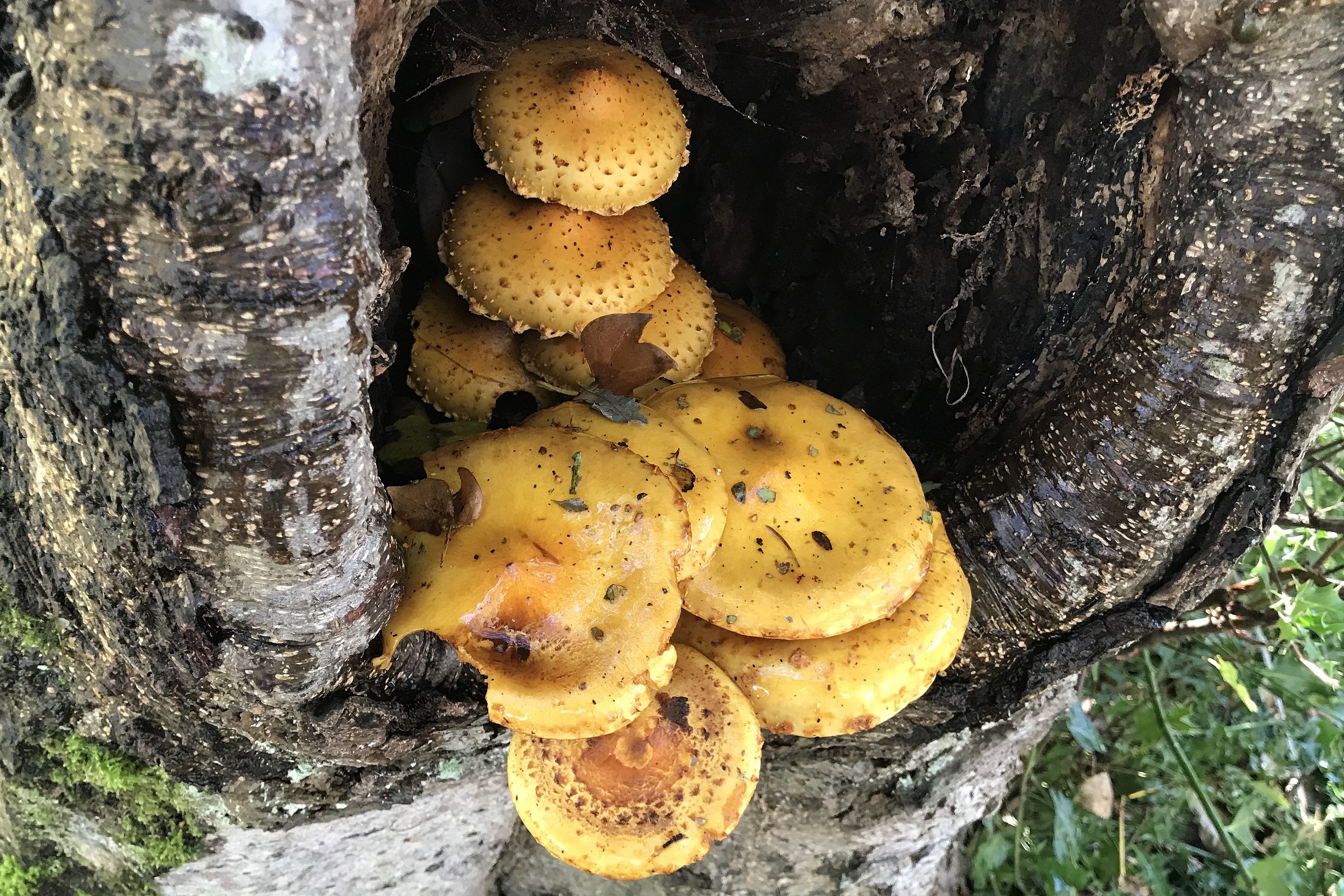Bryan, Lorna and I drove to the path along the slough on the east side of Ferry Road (near Windjammer Road). The slough was full of ducks – Ring-necked, American Wigeon, Mallards, Wood Ducks, Northern Shoveler and Green-winged Teal. The Mallards and Wood Ducks were particularly colourful in the bright sunshine. A nice group of Scalycap mushrooms was growing in a cavity in an alder tree. Glen later identified them as Golden Pholiota.