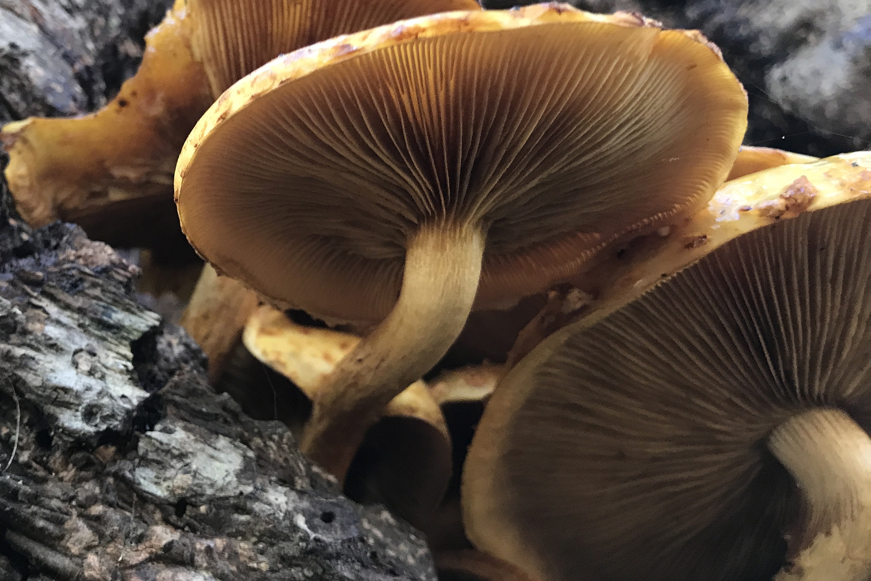 Bryan, Lorna and I drove to the path along the slough on the east side of Ferry Road (near Windjammer Road). The slough was full of ducks – Ring-necked, American Wigeon, Mallards, Wood Ducks, Northern Shoveler and Green-winged Teal. The Mallards and Wood Ducks were particularly colourful in the bright sunshine. A nice group of Scalycap mushrooms was growing in a cavity in an alder tree. Glen later identified them as Golden Pholiota.