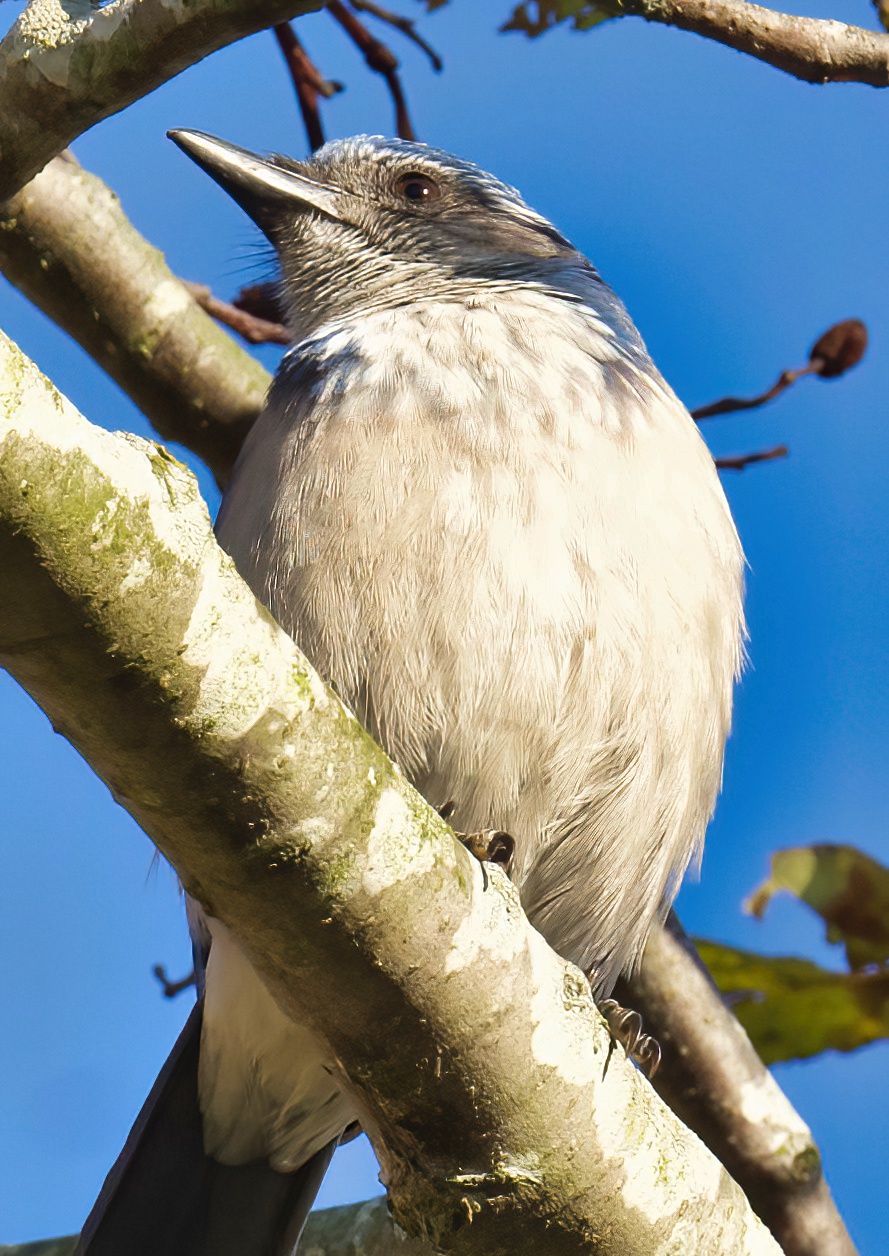 Eventually the Shrike headed East, and we continued back through the playground and along the trail to the harbour road where we looked for the California Scrub-Jay by the Wharfinger’s red house. First we heard one, and then possibly two. One moved towards us from deep in the bush to pop out where some got photos. This one crossed the road, and we followed along, eventually seeing 3 separate California Scrub-Jays. One arrived from across the slough with an acorn in its bill. There were Northern Flickers, American Robins, a Varied Thrush, Fox and Song Sparrows along the edges, and we were overflown by two smallish groups of Snow Geese. As we were almost back to the car park we decided to head to Ferry Road and the South Arm Marsh Wildlife Management Area. Along the way we lost Richard H.