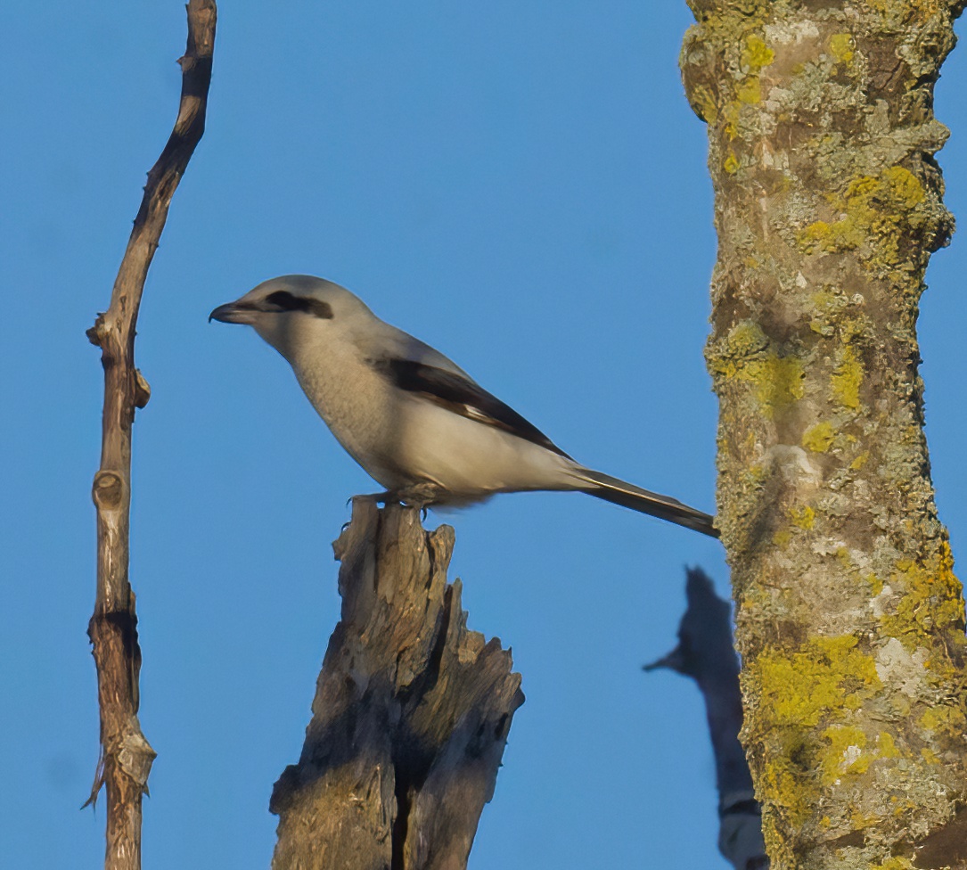 We were stopped around the corner by the rather large clump of Alders that the winds had toppled. After contemplating climbing over or under (as some dog walkers we had met had obviously done, we elected to double back and were rewarded by a Northern Shrike swooping at a large group of American Robins and European Starlings. Although we did not see the Shrike succeed, it was probably keeping the other birds warm with its constant swooping into the groups and causing them to scatter.