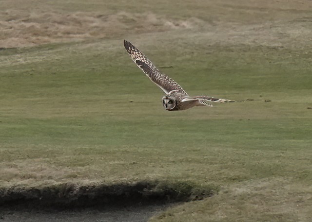 Five of us then drove to Boundary Bay dyke at 72nd to meet Debbi and to look for the Mountain Bluebird that has been there for ten days. But first we stopped at the restaurant at Kings Links Golf Course to get warmed up. Here breakfast and coffee or hot chocolate was very welcome. Then, with a short walk on the dyke, we soon found the Bluebird. Another treat was a Short-eared Owl hunting on the golf course.