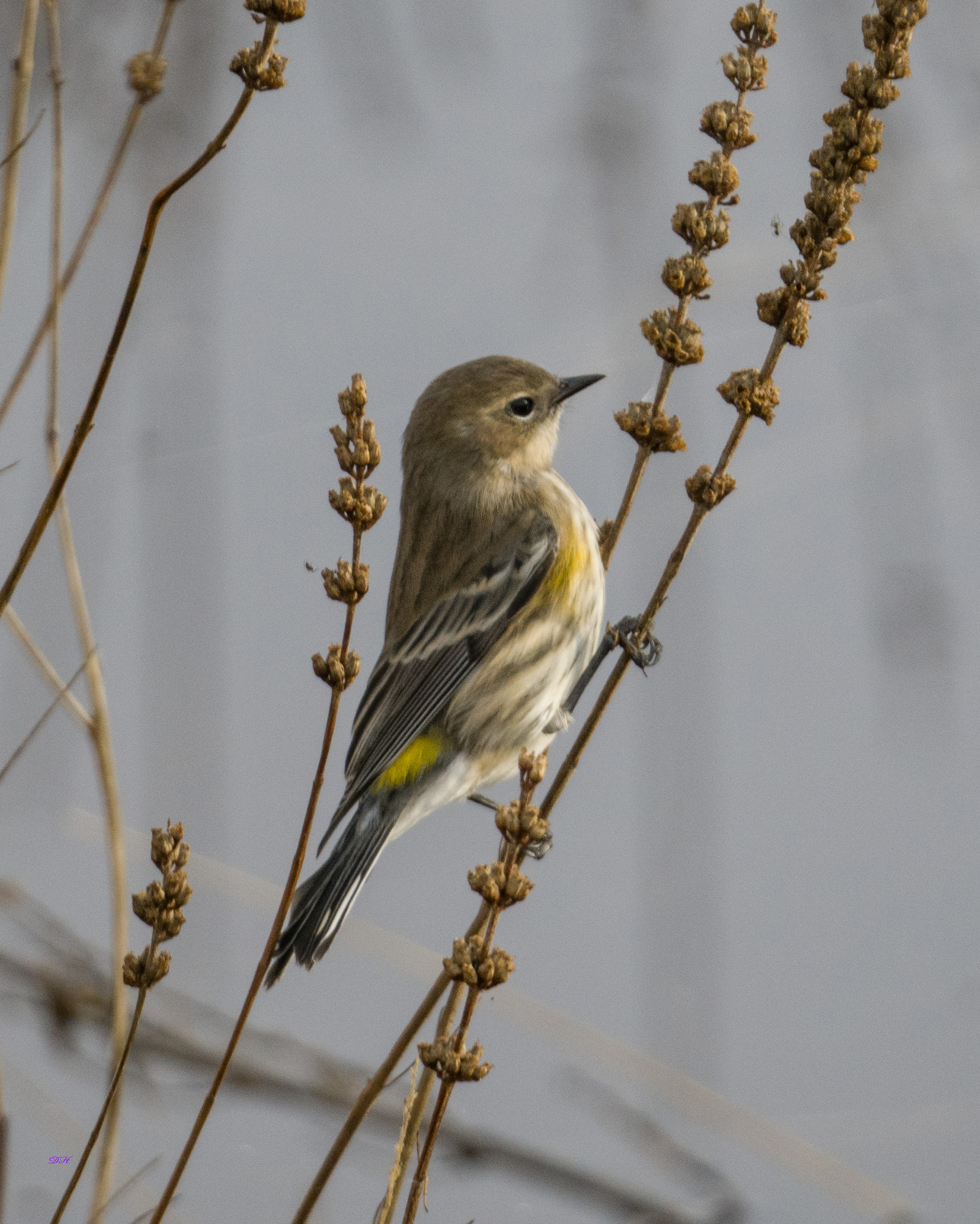 The next excitement was a single Yellow-rumped Warbler (Myrtle) feeding on purple loosestrife seeds in a flooded part of the grassland.