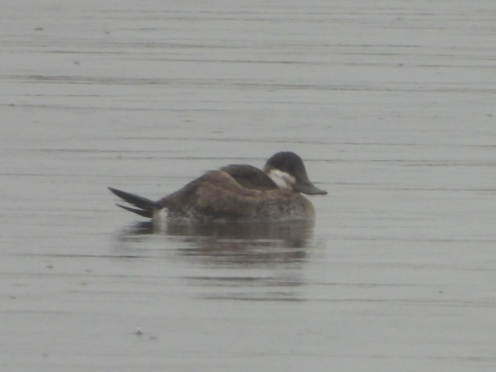 Great flocks of Canada Geese paddled in the shallows, and in the process of scanning them for smaller Cackling Geese, we discerned a lone female Bufflehead and a male Ruddy Duck in non- breeding plumage.